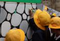 2025(令和7)年4月28日魚町でか山教室~児童が震災復興メッセージを寄せ書き~
