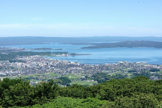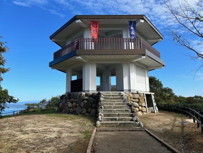 Near the top of Mt. Jo in Nanao, a two-story observation platform commands views of the Noto Peninsula, with the site of Nanao Castle to the west, Nanao Bay and Noto Island to the north, and Toyama Bay to the east. The seven-sided observatory is built around a central pillar. Each side faces one of the seven mountain ridges from which Nanao (nana means seven), derives its name. The observation deck is 380 meters above sea level and affords a magnificent view of the nearby Nanao Castle site.